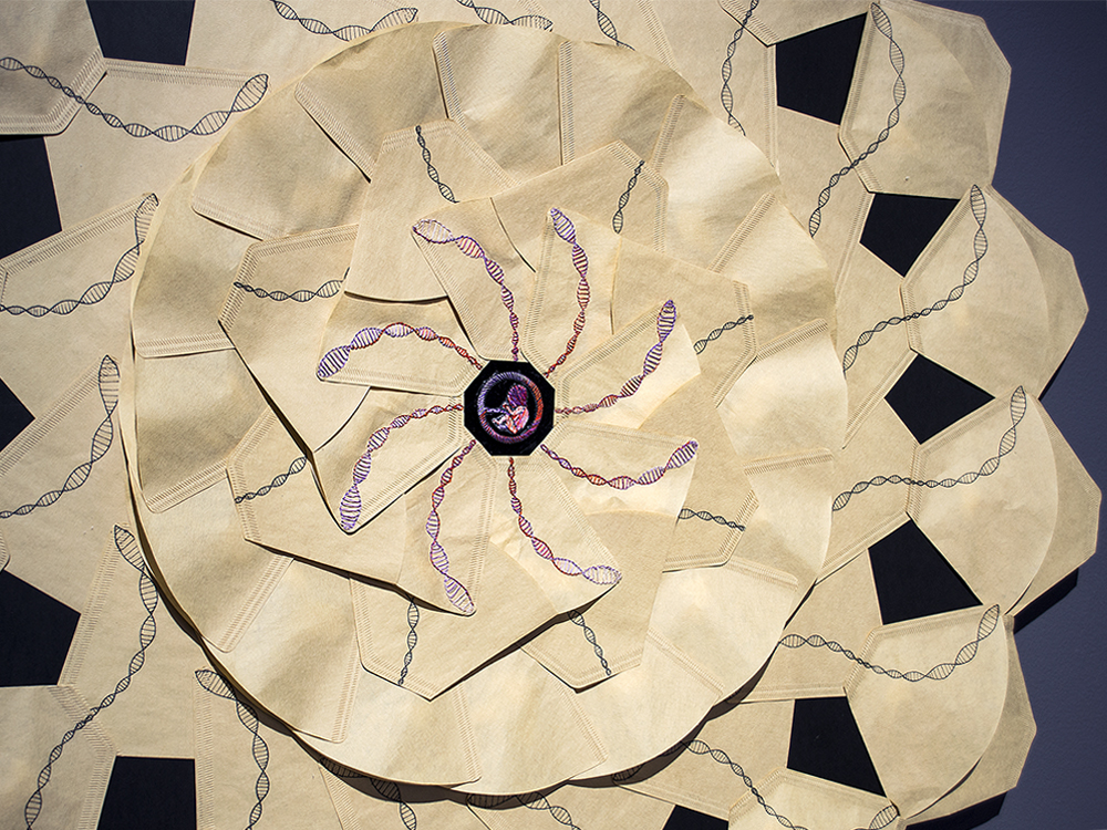 - Technique: cardboard, plexiglas, ink and thread on coffee filters